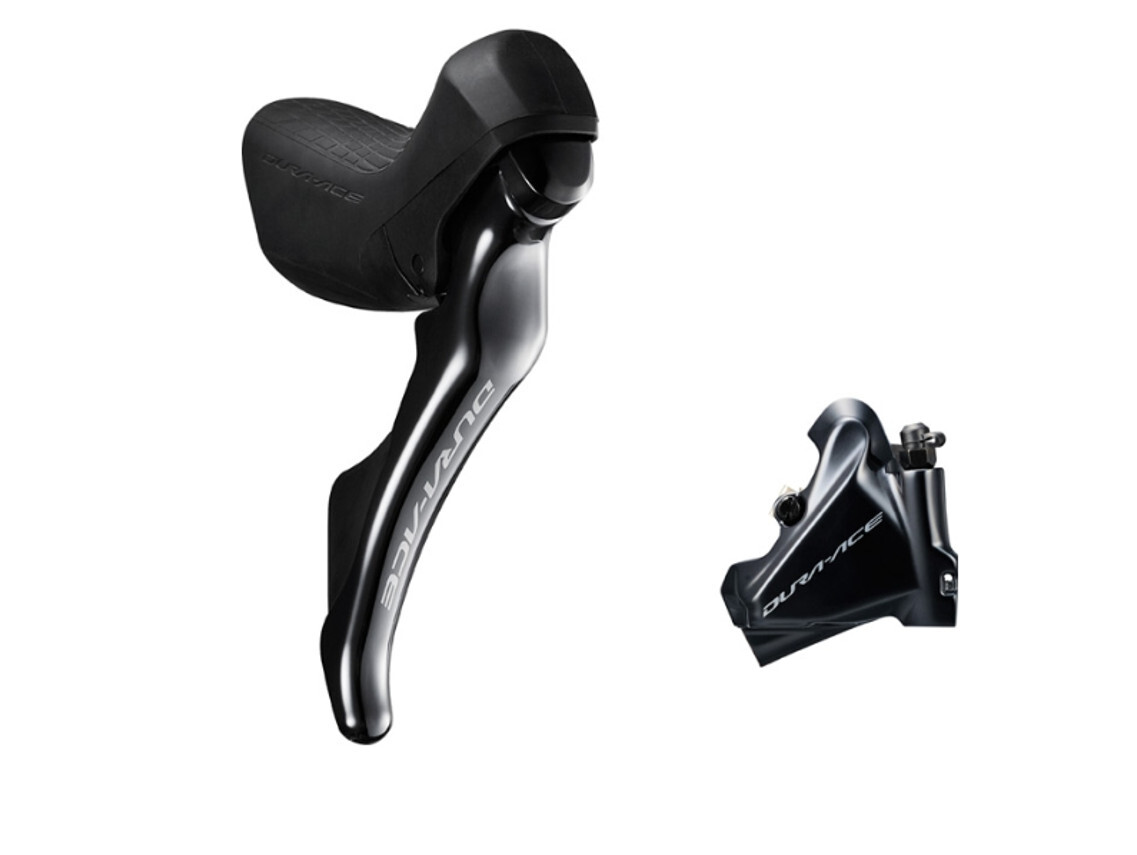 Hydraulic Flat Mount disc brake consisting of ST-R9170 shift and brake lever + BR-R9120 hydraulic disc brake.
